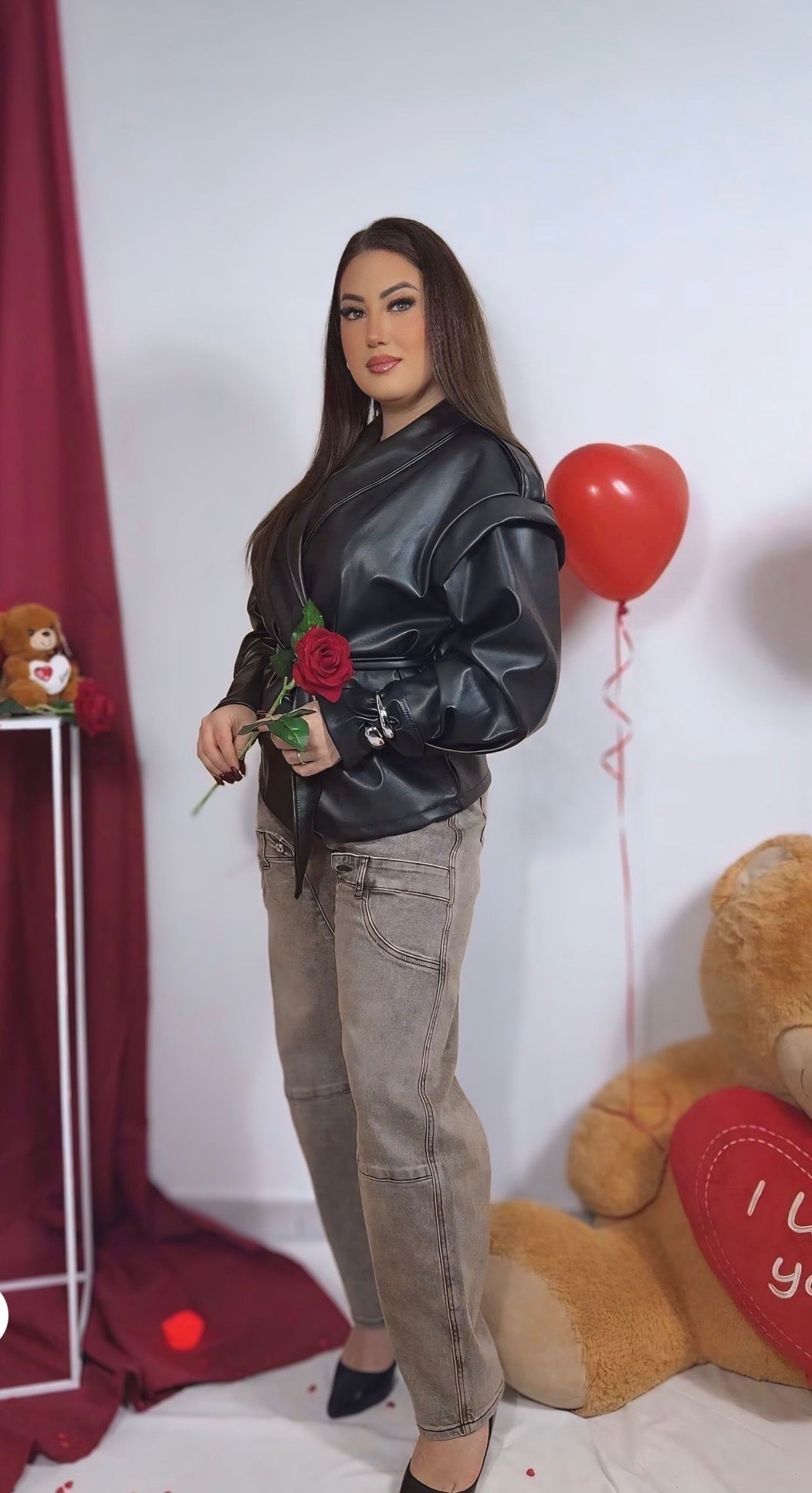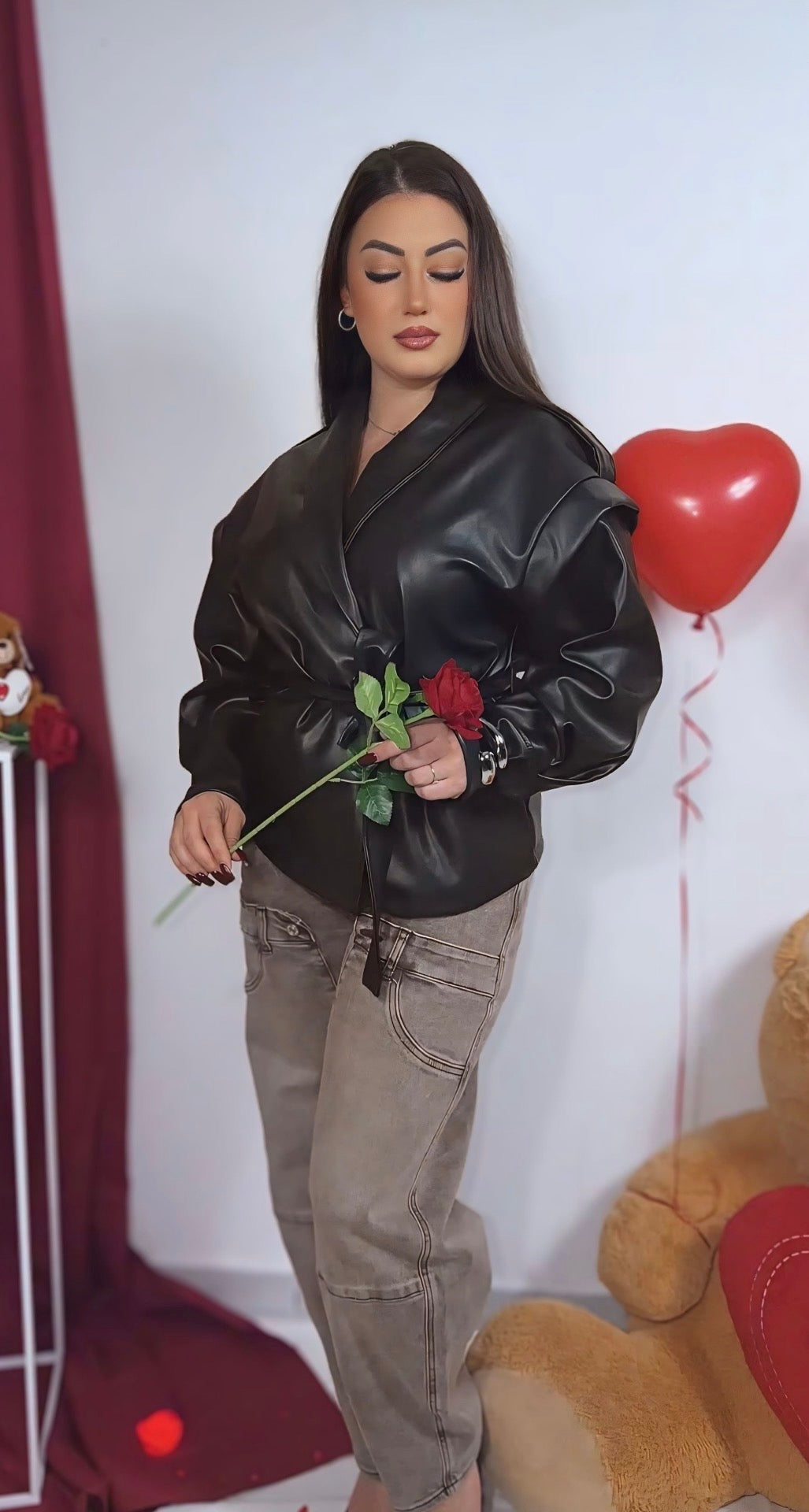 Trench effetto pelle dal finish morbido e luminoso, con scollo profondo a revers e cintura coordinata che valorizza il punto vita. Linea leggermente oversize con maniche lunghe e spalle morbide per un look moderno e sofisticato, perfetto sia aperto che chiuso.
