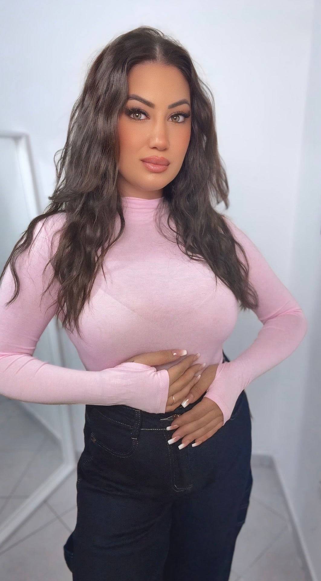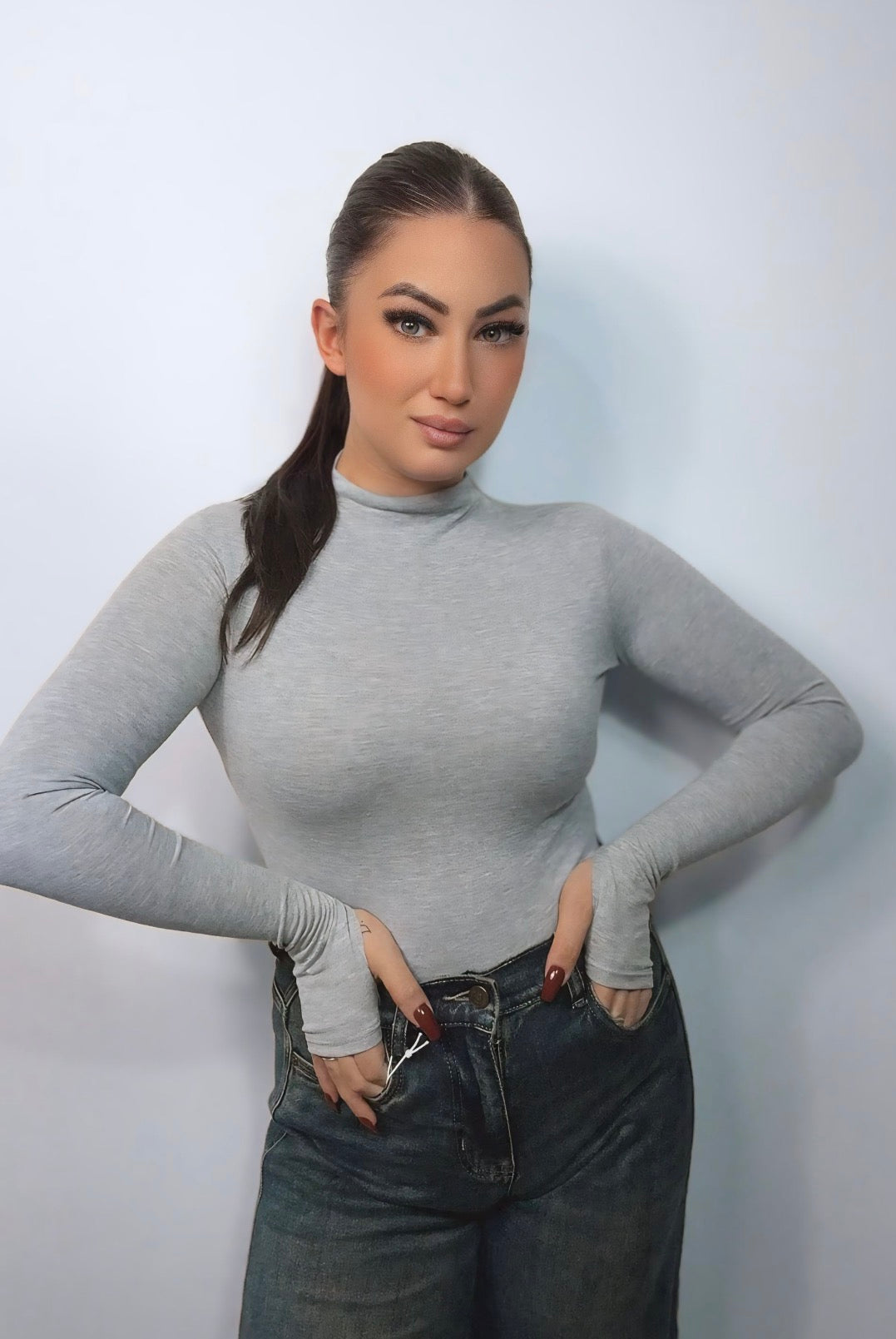 Body velato leggermente trasparente con manica a guanto