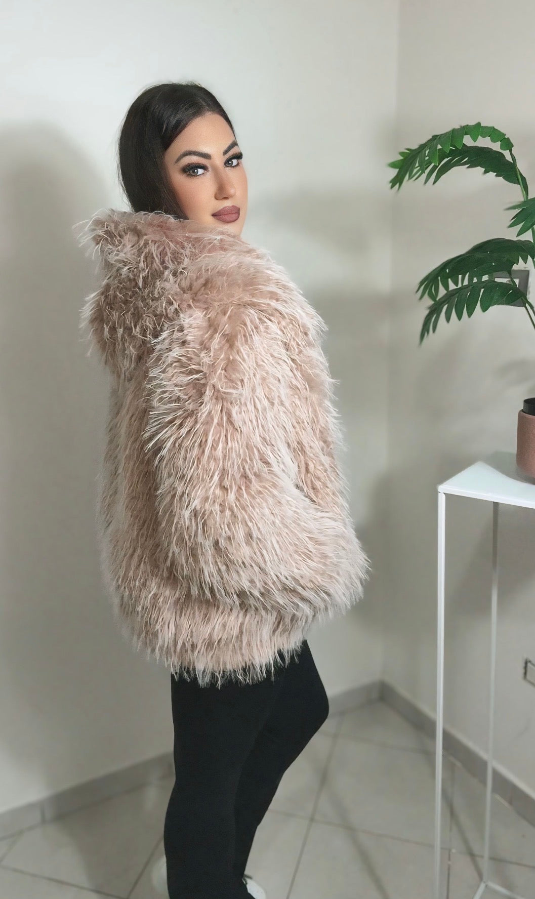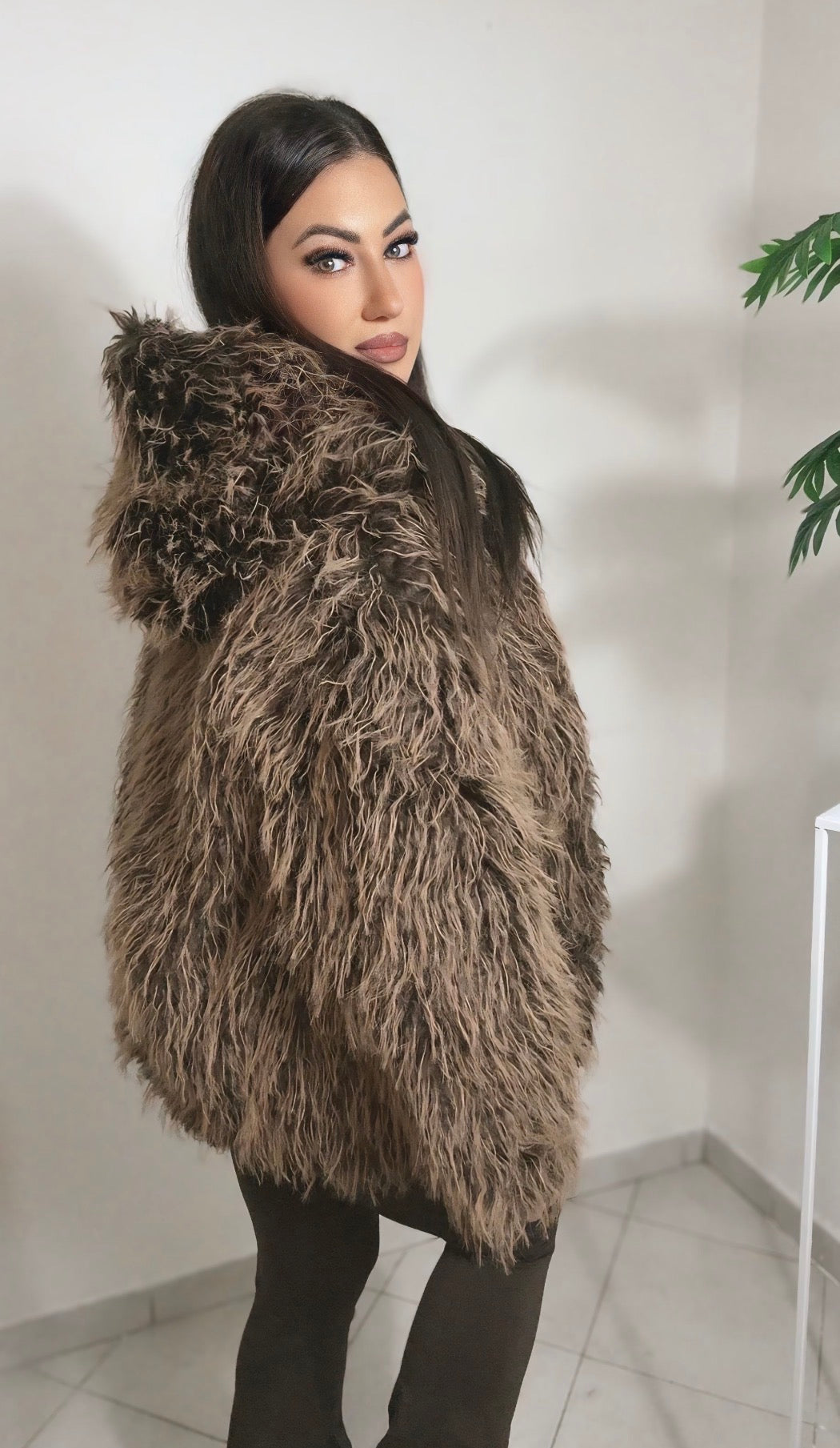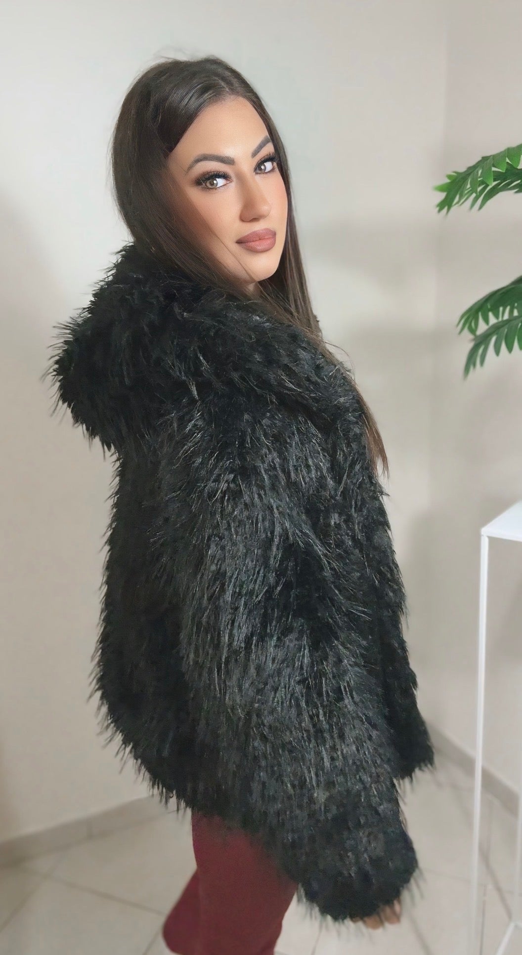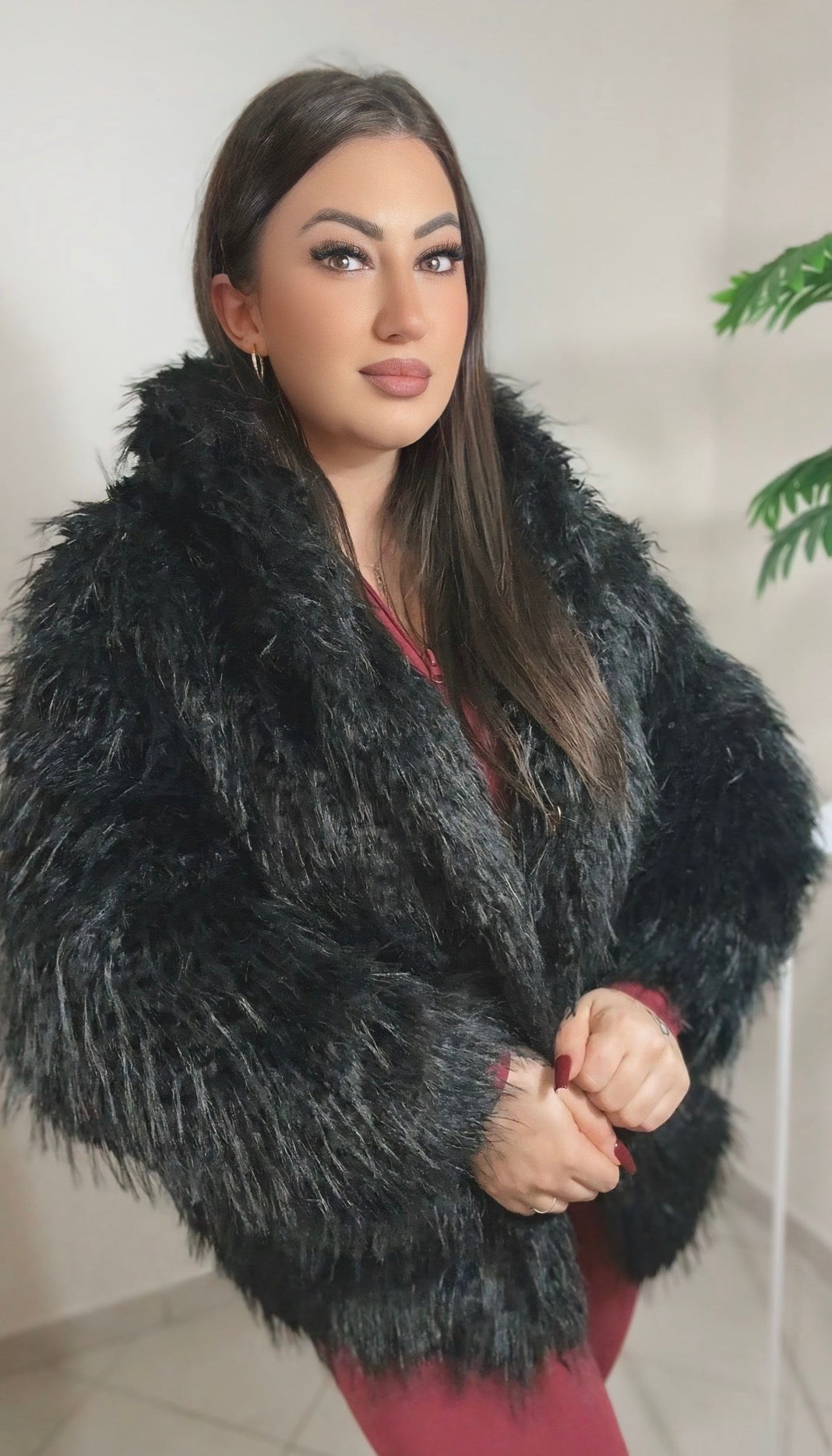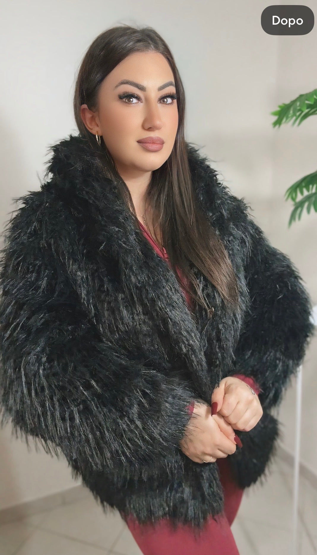 Eco-pelliccia morbida e voluminosa, realizzata in pelliccia sintetica effetto shaggy a pelo lungo.