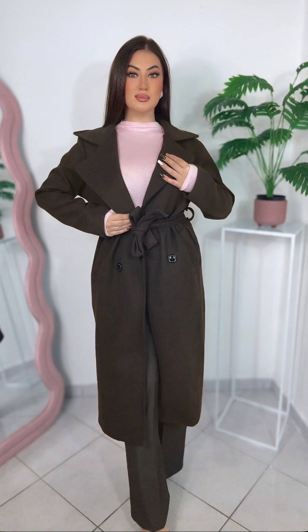 - Chiusura: cintura regolabile + bottoni